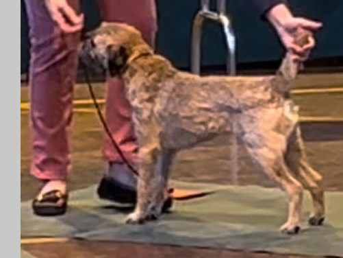 | Alcumlow Rosehip (B) (Slem: HClear) 27-07-2020 Colour: Grizzle and Tan | Alcumlow Solitaire (D) (Slem: Clear) 07-02-2012 | CH Brumberhill Benchmarked JW ShCM (D) (Slem: Clear) |