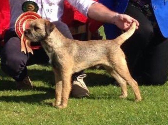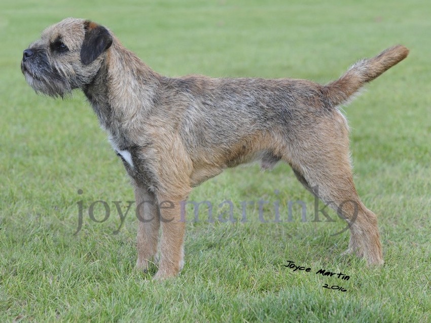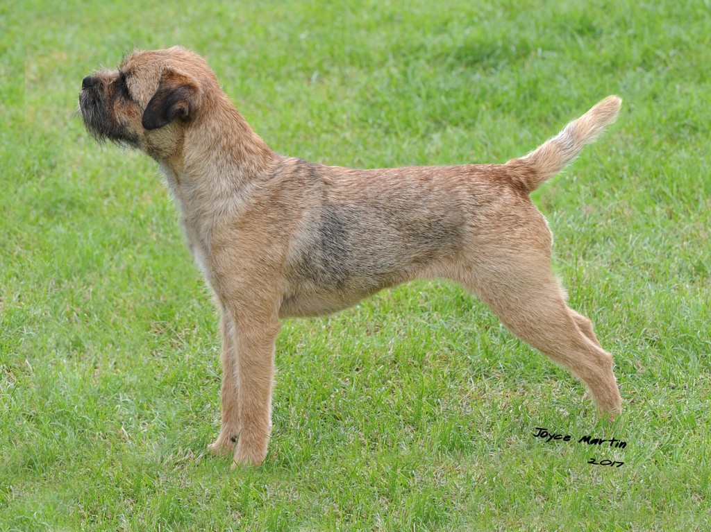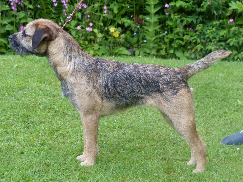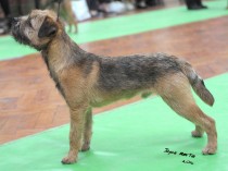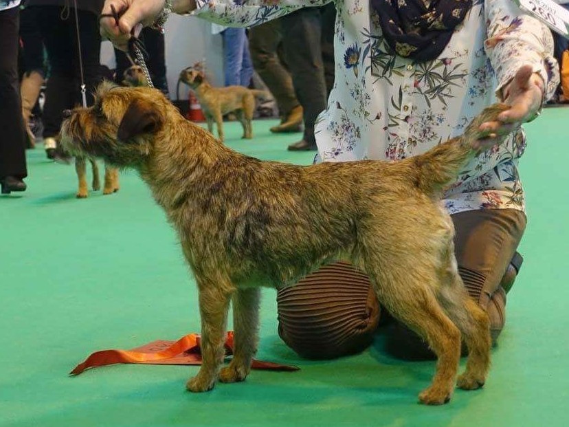 My thanks to the Society for my invitation to judge at Boston show . Thanks too to my stewards who were both efficient and unobtrusive , great timesavers and cheerful ! I very much enjoyed my day on the woolsack and had some lovely dogs and bitches who I felt could do a days work , having the construction to enable them to run the equivalent of a marathon over rough terrain , as well as being narrow , lithe and spannable to get in underground and ultimately back out again . Some did pay the penalty of being too big in rib and thus were heavily over standard for weight when picked up or too wide in front to get in , others failed in their construction to move in a sound , balanced , long , free striding way making one think they could not follow a horse any distance ! All bar 1 male were entire , there were a few with kinks in their tails and I had more than the usual number of level bites , some with very jumbled or small teeth which I feel must be watched carefully and please try to breed out as they are the defence of a working terrier – Border Terriers should have big scissor bite dentition . I still believe a BT should be capable of free standing and moving on a looser lead as of yore , rather than having their legs screwed on and being too strung up , I understand some dogs do not make the most of themselves free stood , but a lot are pushed into a very strange shape by their handlers ,and lose the vivacity and ‘active and game’ outlook that is part and parcel of the breed , making them very depressed , even some of the puppies looked as though they would rather be anywhere else but in a show ring , either from being over shown or over handled . There were a few dogs who I felt needed more weight on them , their coats hiding their stuck up spine & pin bones – this may be to try and make them more easily spannable or weigh nearer the standard , but it is very unfair on any adult or puppy to starve them , and they did pay the price in some classes as they could not work as thin and lacking strength as they were. In other words they should be made right not starved into shape .