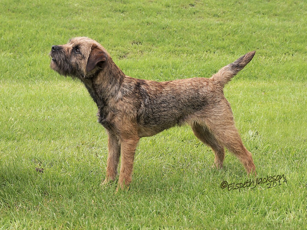 2 1/2 year dark grizzle in lovely tweedy double coat that was presented well . Upstanding and masculine he has developed well from the stringy puppy he was. Very typy otter head with dark eye and well placed ears. Good big teeth in scissor bite . Narrow front assembly with long clean well placed shoulders and good length of upper arm bringing his legs underneath him correctly . Medium bone straight legs , strong pasterns ,with excellent deep tight feet. Good rib shape and strong loin into well angulated and muscled hindquarters . Moved well in all directions keeping a very good outline and carrying his tail very well. Balanced and typical & just coming to his best ,pleased to award him RCC.
