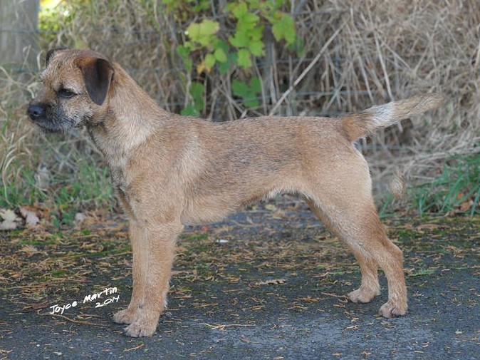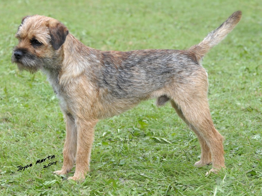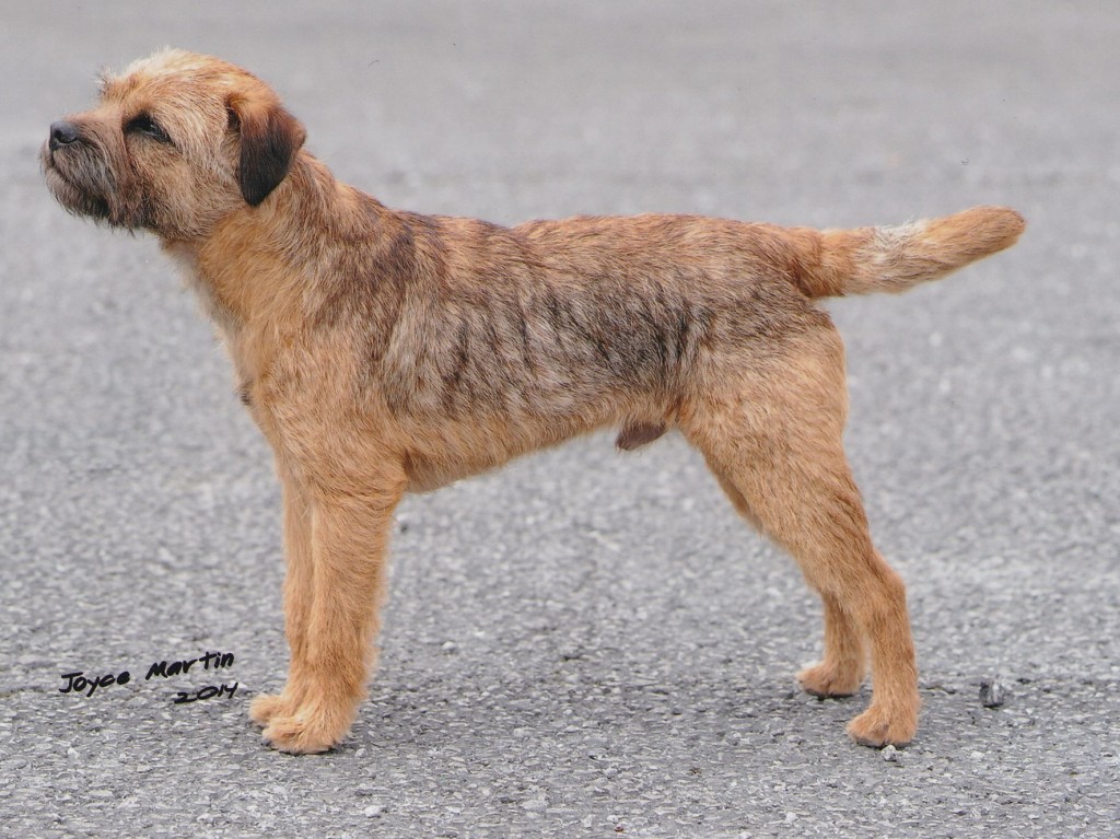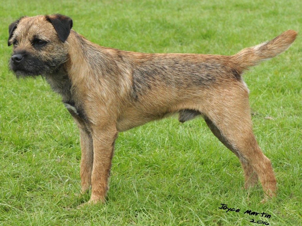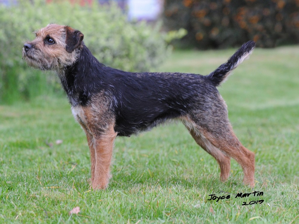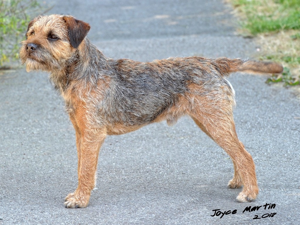 Shorter coupled than 2, loved her neat size, good length of rib, varmity expression, dark eye, correct width of skull, big teeth, in excellent double coat, pleasure to go over, well presented bitch. RES CC