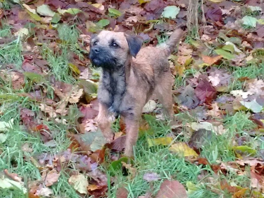 Another nice typical border, stronger made throughout than one. Masculine in head with strong jaw, good eye and neat ears. Thick coat and pelt moved okay.
