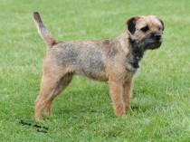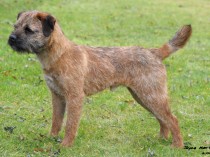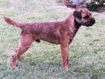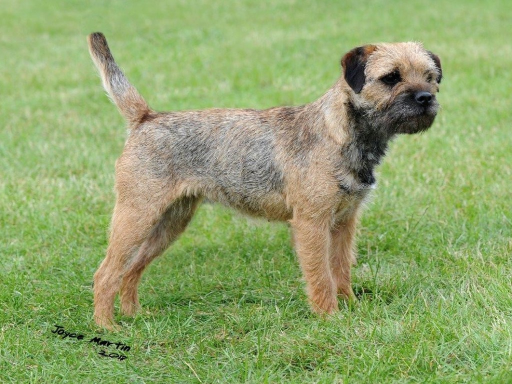 smaller, cobbier grizzle dog, well balanced outline. Good coat and thick pelt. Not as positive on the move but gave the impression of a good old fashioned Border Terrier