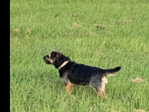 Another who catches the eye as an honest border. Good for size he is built on classic lines. Appealing in head with good bite, flat skull, dark eye and small neat ears. Good neck with well constructed front, body and rear end, slightly deeper in chest than 1 & 2. Nice topline with short tail. Good harsh double coat and pelt. A smart mover to and fro. Also likes a treat.
