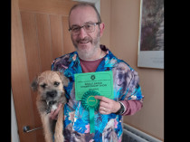 I judged this bitch 4yrs ago, A typical border bitch, she as a lovely moderate broad skull with short strong muzzle, great expression. Narrow front, well laid shoulders into level topline, well muscled hinquarters, moved with ease, but not in show condition which let her down today.