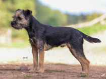 Another very nice typical border, head of correct proportion, good expression, Well balanced all round, narrow throughout, In good coat, Nicely muscles hindquarters.