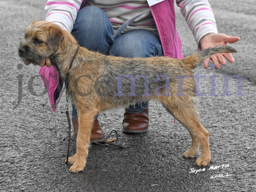 Blue and Tan, super young lady who put me under her spell, at such a young age she screams border terrier, I cant read the future but i predict very good times ahead for her and her sibling’s. A head to die for, neat ears, dark eyes, correct bite with strong teeth, punishing under jaw, gun barrel front, neat feet, body needs to develop obviously at this age, moved so well, I have given CCs since 1990 this is the youngest, dog/bitch I have ever given a rcc to but i have to judge it as I seen it on the day