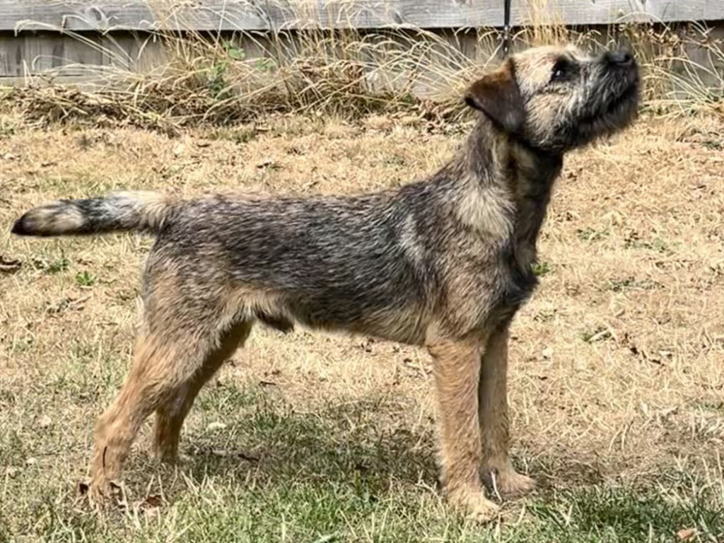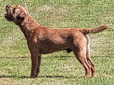 Litter sister to the puppy dog, true to type and soundly made, going to have some fun with this litter, lovely feminine head and expression, good reach of neck and lay of shoulders, racy body, with good angulations, nice harsh jacket, moved true both ways.