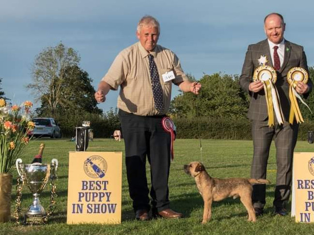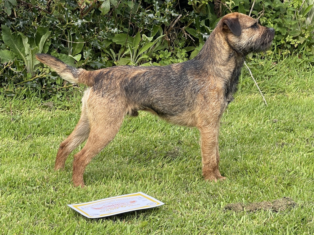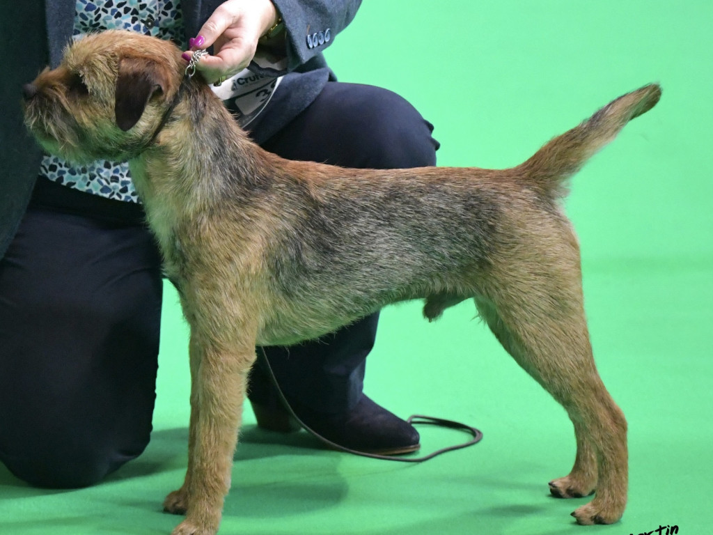 A promising youngster which is of true type and typical of the breed. Well balanced looks good in profile and excels on the move, moved true fore and aft keeping a level top-line and correct tail set. Put down in good condition. B.P.D. & B.P.I.B. then went onto win puppy Terrier Group