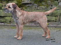 Typical head of good shape and size with correct bite, good reach of neck and nice lay of shoulder, good tight feet, ribs carried well back spannable, strong in lion kept a good topline on the move and tail set, in very good harsh coat. true both ways.