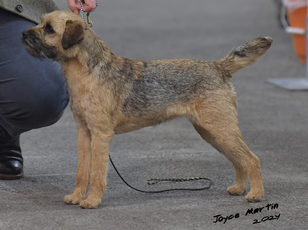 I would like to thank the officers and committee of the club for inviting me to judge this 40th Anniversary show, and for the hospitality on the day. Thank you also to the hardworking stewards, it was a long and very busy day. Most of all, thank you to the exhibitors for giving me such a fabulous entry. I appreciated each and every exhibit, and had the privilege of going over so many quality dogs that difficult decisions had to be made and many lovely dogs went cardless. Foremost, I see the Border Terrier as ‘essentially a working terrier’ and was therefore looking for construction that would render this possible. A few exhibits were too big, too wide or too deep in brisket which might prevent them from going to ground, or even cause them to get stuck. A few had very thin skin – skin must be thick. Most bites were good, just a few with teeth out of line or missing. Coats come and go, so were understandably at different stages. However, on a working terrier a good hard coat does complete the picture. Good movement and a strong, even, economical gait comes from soundness of construction and the muscle tone of a well exercised dog. Therefore I looked for good layback of shoulder and the correct length and angle of upper arm to give a good reach in front, a strong loin, good bend of stifle and well angulated, well muscled hindquarters to give matching drive from the rear.