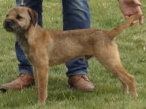 Handy sized bitch with a pleasing head ,short strong muzzle and neat ears. Straight front,Good for bone and well constructed. Level topline ,strong loin and good rear angulation. Dense jacket and loose pelt and moved well both ways.