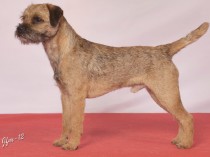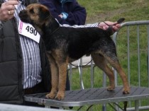 this is in fact the first time I have had the pleasure of going over this dog despite the fact that he comes from my own home country & his owner even shares my family name! This would of course not have mattered if I had not liked him, which I really do – beautiful type & size, just the right amount of bone, very typical body with adequate depth, racy hindquarters, perfect topline, harsh coat albeit a little short on the day, pleasing head, very true mover & never gave up trying, fits the Standard very well & ultimately landed the CC, BOB & G3, performing like a true Border Terrier completely unfazed by storm & wind, a great pleasure to judge