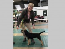 One I have judged before and I still find him as appealing today as I did then.Lovely Blue and Tan not quite 2 years old. Varminty expression with strong jaw housing large teeth. In good coat just coming in after a recent strip Easily spanned and of a nice size. Moved with drive around the ring holding his topline.